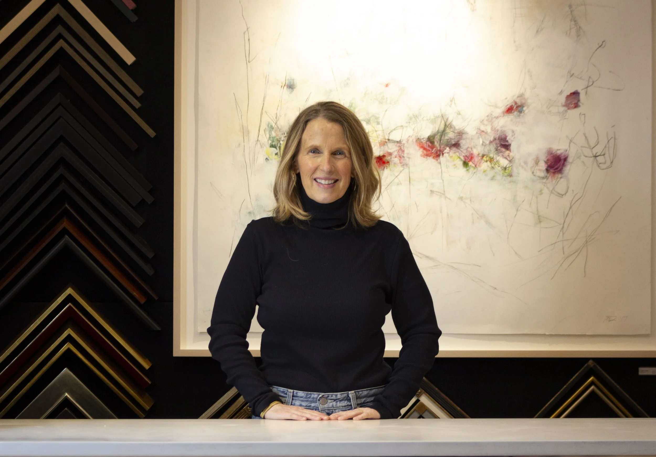 Patricia took over Newburyport Framers in 2018 and has not looked back. After 19 years home raising her family she found the shop to be the perfect place for her skill set to come together. Patricia’s background is varied, including art school, house flipping, mural work, and teaching yoga.